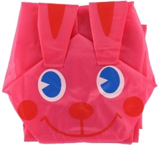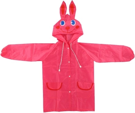 Jänku disainiga vihmamantel, millel on kapuuts kõrvade ja näoga.