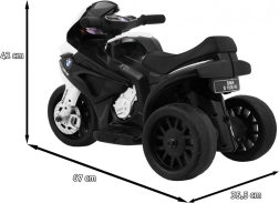 Stiilne laste elektrimootorratas, mis on inspireeritud BMW S 1000 RR-ist, pakub turvalist sõitu kolmel rattal, realistlikke LED-tulesid ja helisid juhtraual. Kerge ja stabiilne konstruktsioon koos ökonaha istmega rõõmustab nii väikseid sõitjaid kui ka vanemaid.