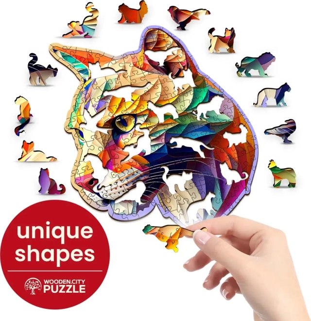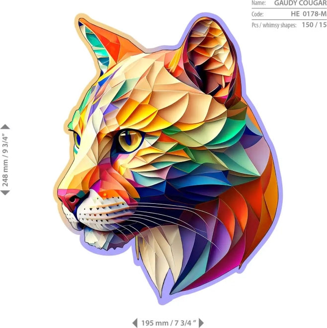 Avasta lõbu stiilse WOODEN CITY puidust puslega Värviline puma, 150 tükki. Tänu ainulaadse kujuga loomakujulistele tükkidele, täpsele laserilõikele ja keskkonnasõbralikule plastivabale pakendile saad kauni, vastupidava ja veidi keerukama mõistatuse täiskasvanutele ja vanematele lastele.