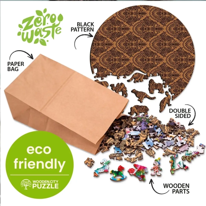 Komplektis on ka eraldi aluskujund mugavamaks kokkupanekuks. WOODEN CITY hoolib loodusest – pusle on 100% EKO-sõbralik, pakitud paberist kotikesse ja karpi ilma plastita. Suurepärane kingitus igaks puhuks ning kaunis dekoratsioon pärast kokkupanekut.