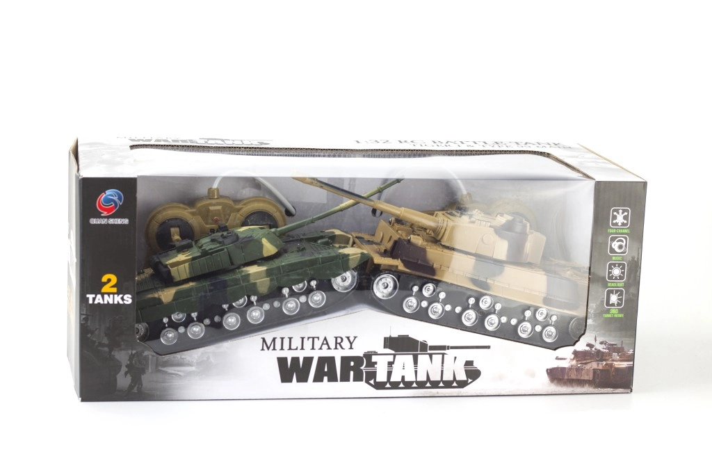 Naudi põnevaid lahinguid selle kahe RC tanki komplektiga. Need pakuvad edasi/tagasi sõitu, pööramist paremale ja vasakule, kiirust kuni 3,6 km/h ja ulatuvust kuni 20 m. Igaüks töötab erineval sagedusel 27 MHz / 40 MHz, et mängida ilma häireteta. Ideaalne nii väikestele kui suurtele strateegidele. Patareid ei kuulu komplekti.
