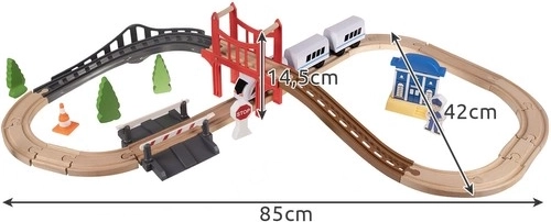 See puidust rongirada on ideaalne lahendus laste loovuse ja kujutlusvõime arendamiseks. See on loodud nii, et lapsed saaksid sukelduda raudteelõbu maailma kodus või õues. Komplekt sisaldab kokku 37 täpselt töödeldud elementi, sealhulgas silda ja hooneid, mis lisavad mängule realistlikke detaile.