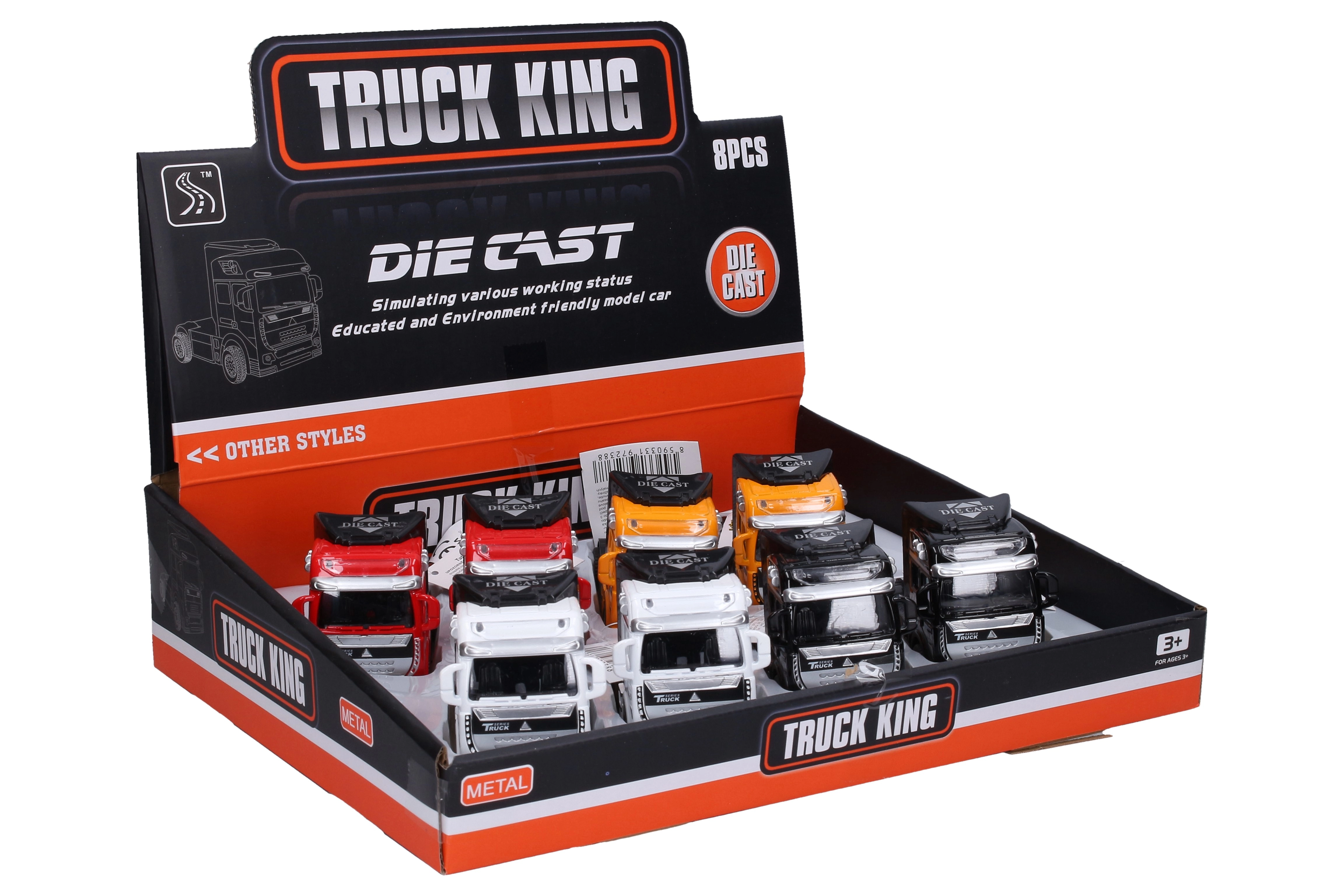 Metallist tagasikeritav haagisauto mõõtudega 12×5,5×7,5 cm on ideaalne mänguasi väikestele autohuvilistele. Valikus neli värvi – must, kollane, punane ja valge.