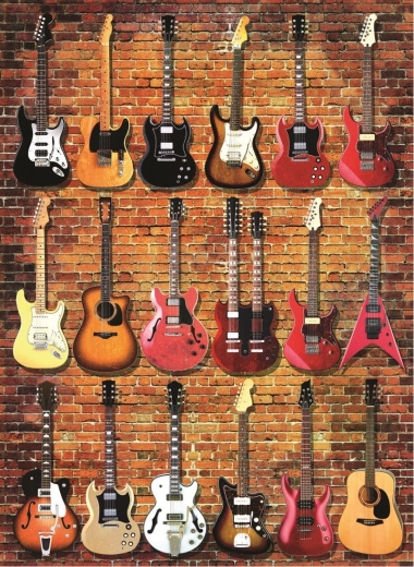 See stiilne muusikateemaline pusle rõõmustab nii puslefänne kui ka kitarrisõpru. Tänu praktilisele alusele saate kasutada karbi kaant selge eeskujuna, mis muudab kokkupaneku meeldivamaks ja kiiremaks. Valmis puslest tekib dekoratiivne pilt mõõtudega u 48 × 66 cm, ideaalne raamimiseks.