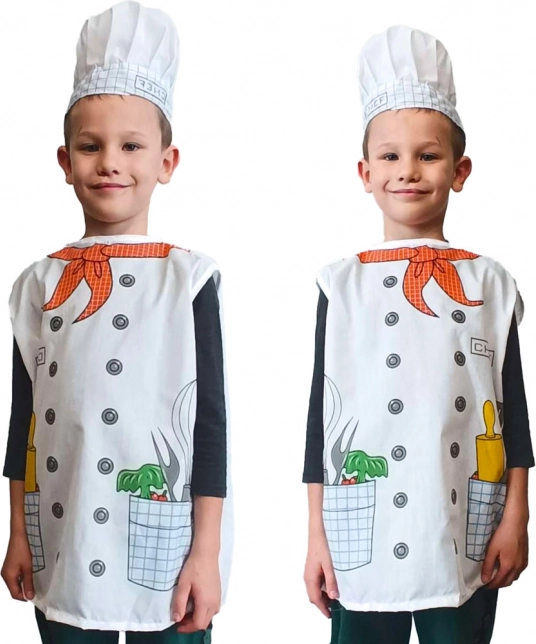 Kostüüm sisaldab valget põlle stiili ja kokamütsi, mis paneb teie lapse end tundma kui päris kokk.