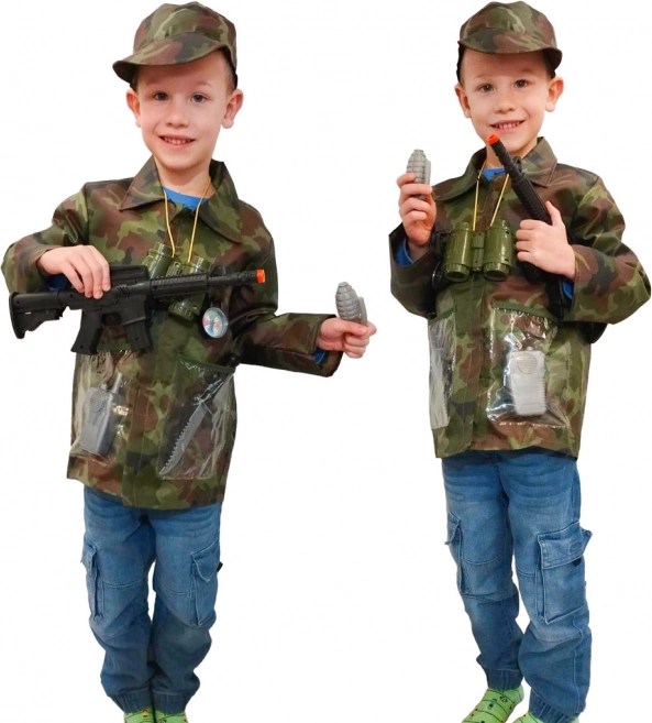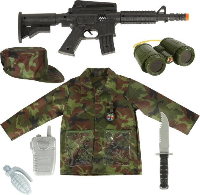 Kvaliteetne maskeeriv jakk ja müts tagavad täiusliku sõjalise välimuse. Sobib nii õue- kui toamängudeks.