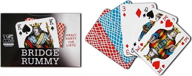 Prantsuse kaartide populaarne disain Rummy formaadis on ideaalne mängimiseks Tšehhis, sinise ja punase tagaküljega lainelises stiilis.