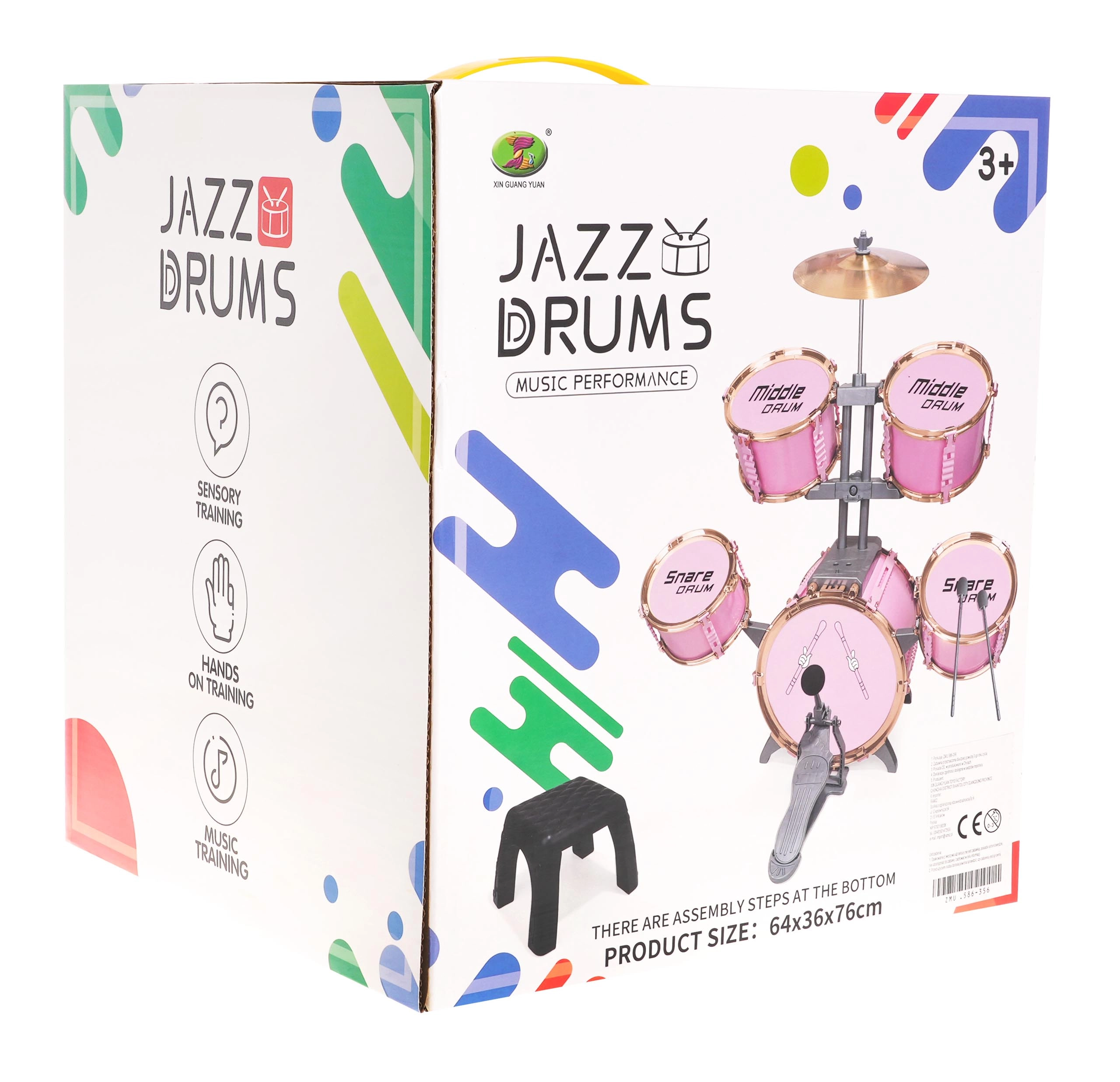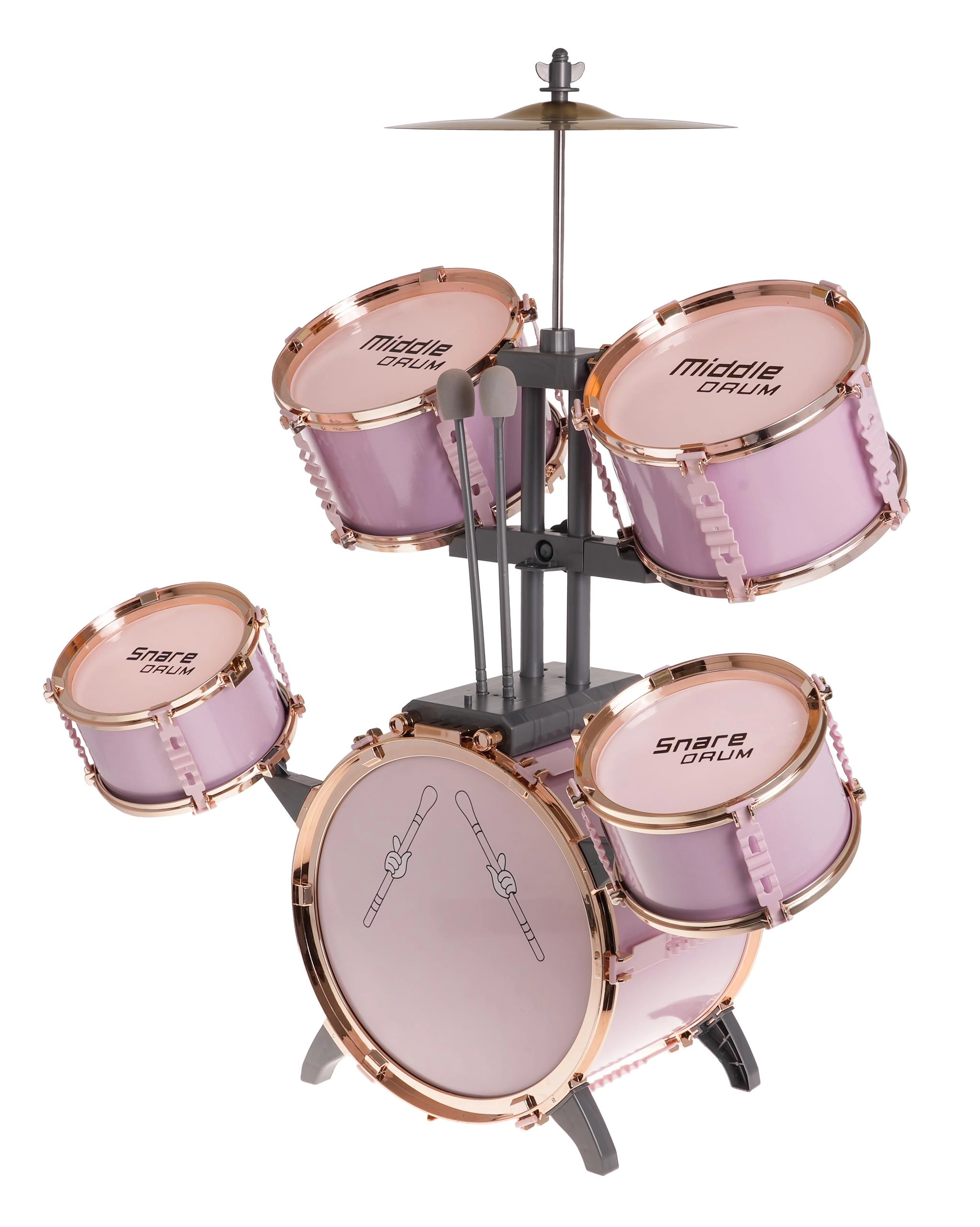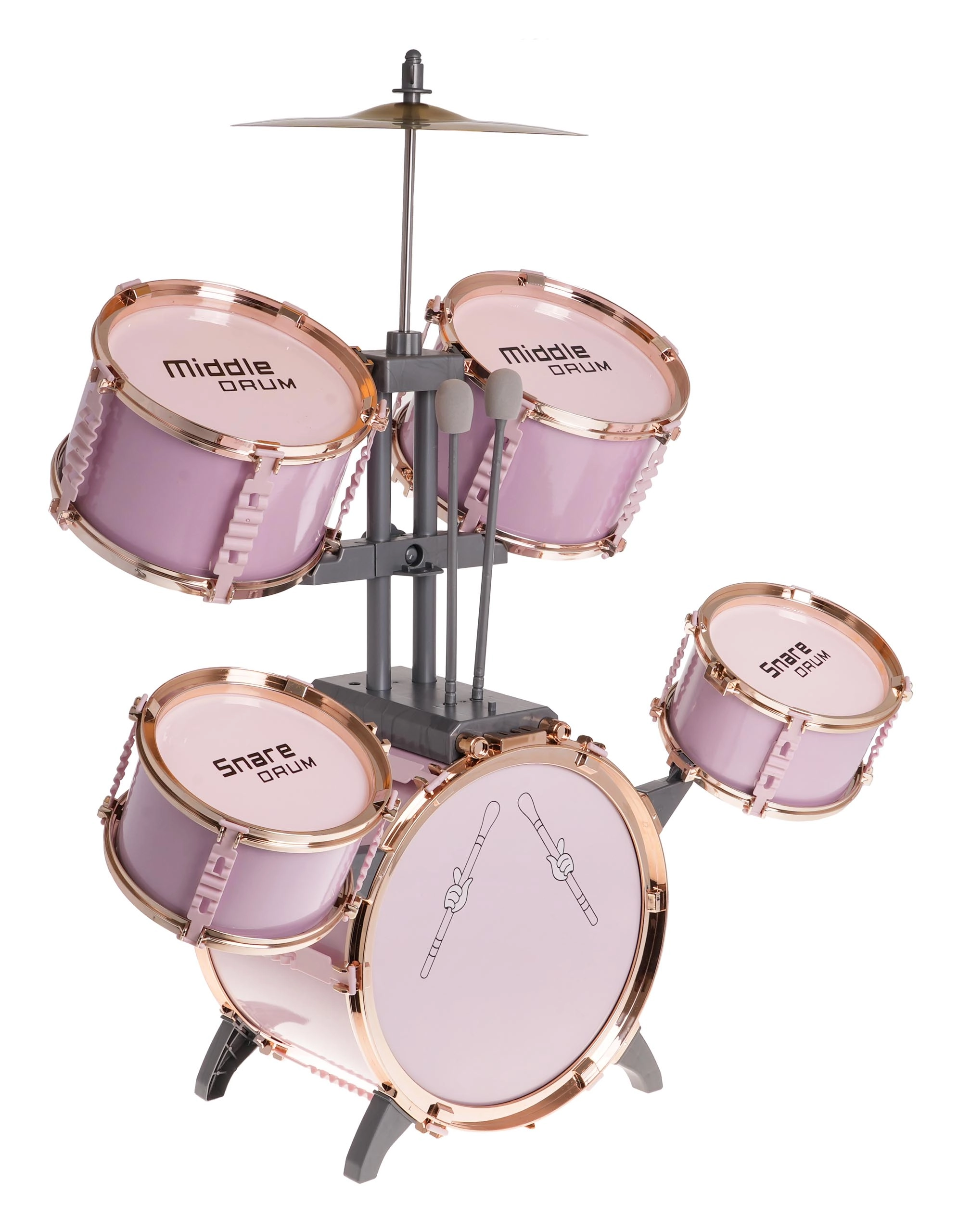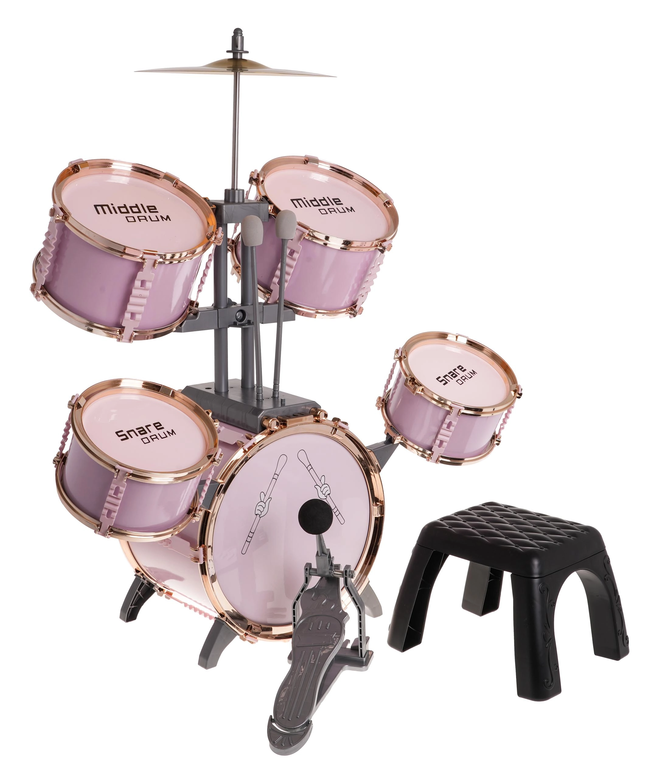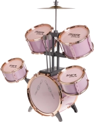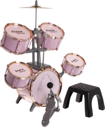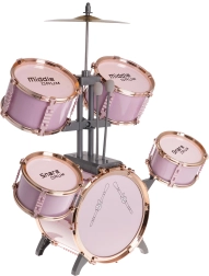 Alustage kodust kontserti roosa laste trummikomplektiga, millel on 5 trummi, metallist taldrik, suure trummi pedaal, 2 pulka ja taburet. Ideaalne alates 3. eluaastast – arendab rütmitunnet, koordinatsiooni ja loovust mängides.