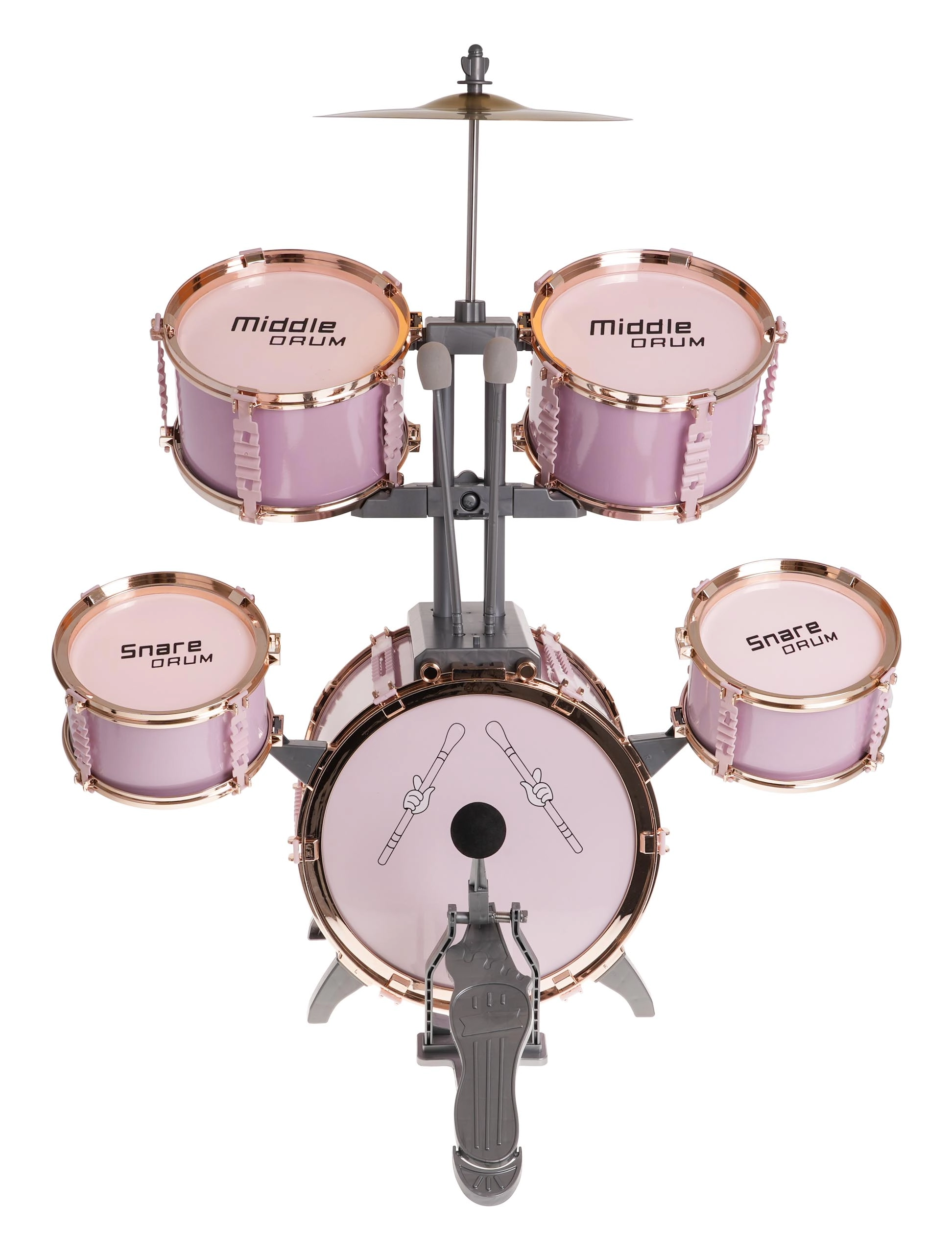 See stiilne roosa trummikomplekt on kerge, stabiilne ja loodud just väikestele trummaritele. Tänu märgistatud trummidele ja selgele paigutusele omandavad lapsed hõlpsalt rütmi ja tehnika põhialused. Metalltaldrik ja suure trummi pedaal võimendavad mängu realistlikkust.