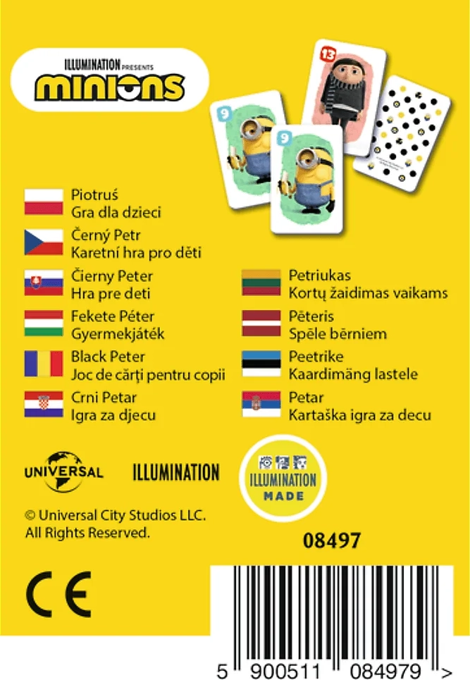 Kaardimäng Must Peeter Minionid pakub suurepärast meelelahutust nii lastele kui ka täiskasvanutele. Mängijad jagavad kõik 25 kaarti ja püüavad moodustada võimalikult palju paare. See, kelle kätte jääb mängu lõpus Must Peeter, kaotab. Mäng sobib ideaalselt lõbusaks pärastlõunaks pere või sõpradega.