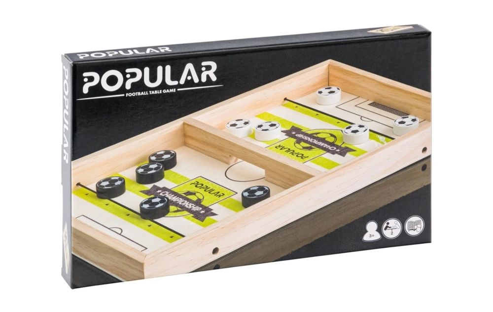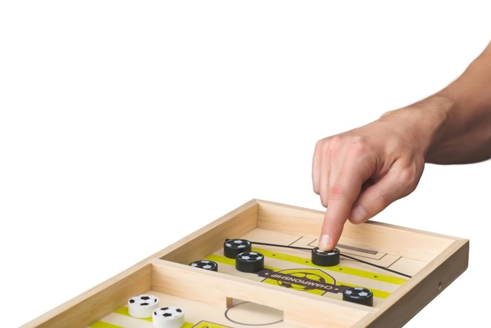 Nauti pingelist tegevust selle lauajalgpallimänguga, kus loevad kiirus ja täpsus. Eesmärk on tulistada oma žetoonid läbi ava puidust vaheseinas vastase poolele enne, kui tema seda teeb. Ideaalne kiireteks perelahinguteks ja reaktsiooni treenimiseks. Sobib lastele alates 3. eluaastast.
