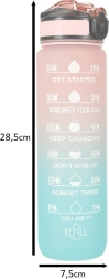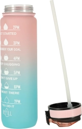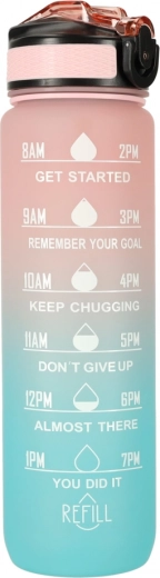 See praktiline 1-liitrine veepudel sobib suurepäraselt tööle, kooli ja treeningule. Tänu ajamärgistele ja motiveerivatele fraasidele on sinu vedelikutarbimine terve päeva jooksul kontrolli all. BPA-vabast Tritanist kerge ja vastupidav teostus näeb välja nagu klaas, kuid talub lööke oluliselt paremini.
