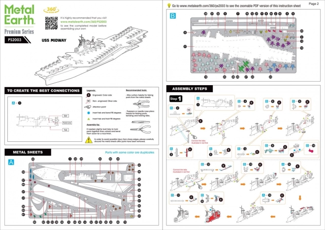 Ehita ikooniline lennukikandja USS MIDWAY realistlikest metallosadest. METAL EARTH Premium Series pakub täpset lasergraveeringut, detailset teostust ja muljetavaldavat kollektsionääri mudelit. Ehitamine nõuab kannatlikkust ja osavust, kuid tulemuseks on eksklusiivne dekoratsioon autentsete tekipinna ja ülastruktuuri detailidega.