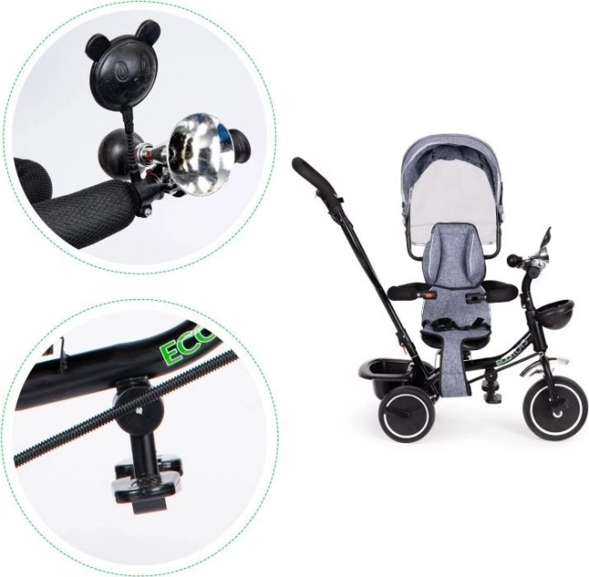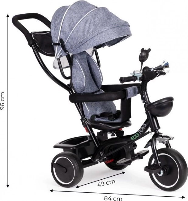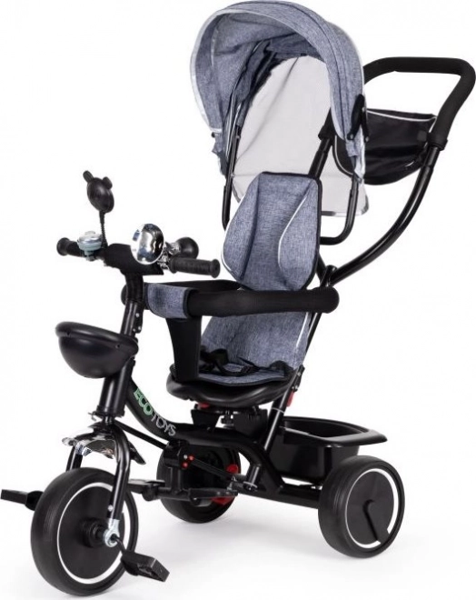 ECOTOYS kolmerattaline tagab mugavuse tänu pehmele seljatoele ja turvarihmadele. Eemaldatav varikatus kaitseb päikese ja vihma eest.