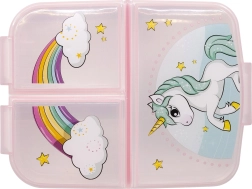 Stiilne mitmeosaline einekarp rõõmsa ükssarviku ja vikerkaare motiiviga aitab hoida toidu sirgelt eraldatuna ja värskena. Kolm eraldi sektsiooni sobivad suurepäraselt puu- ja köögiviljadele, võileivale ning väikestele maiustele. Tugev konstruktsioon peab vastu tavapärastele kukkumistele ja põrutustele, mistõttu on karp suurepärane valik igapäevaseks kasutamiseks.