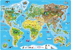 Illustreeritud loomad, vaatamisväärsused ja loodusimed arendavad lõbusal viisil geograafiateadmisi. Tänu 160 tükile ja suurele formaadile on kokkupanek selge ja motiveeriv.