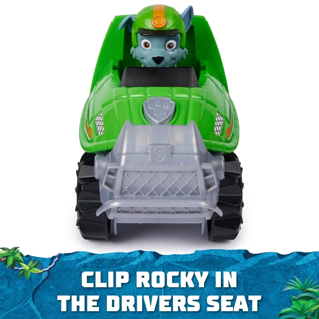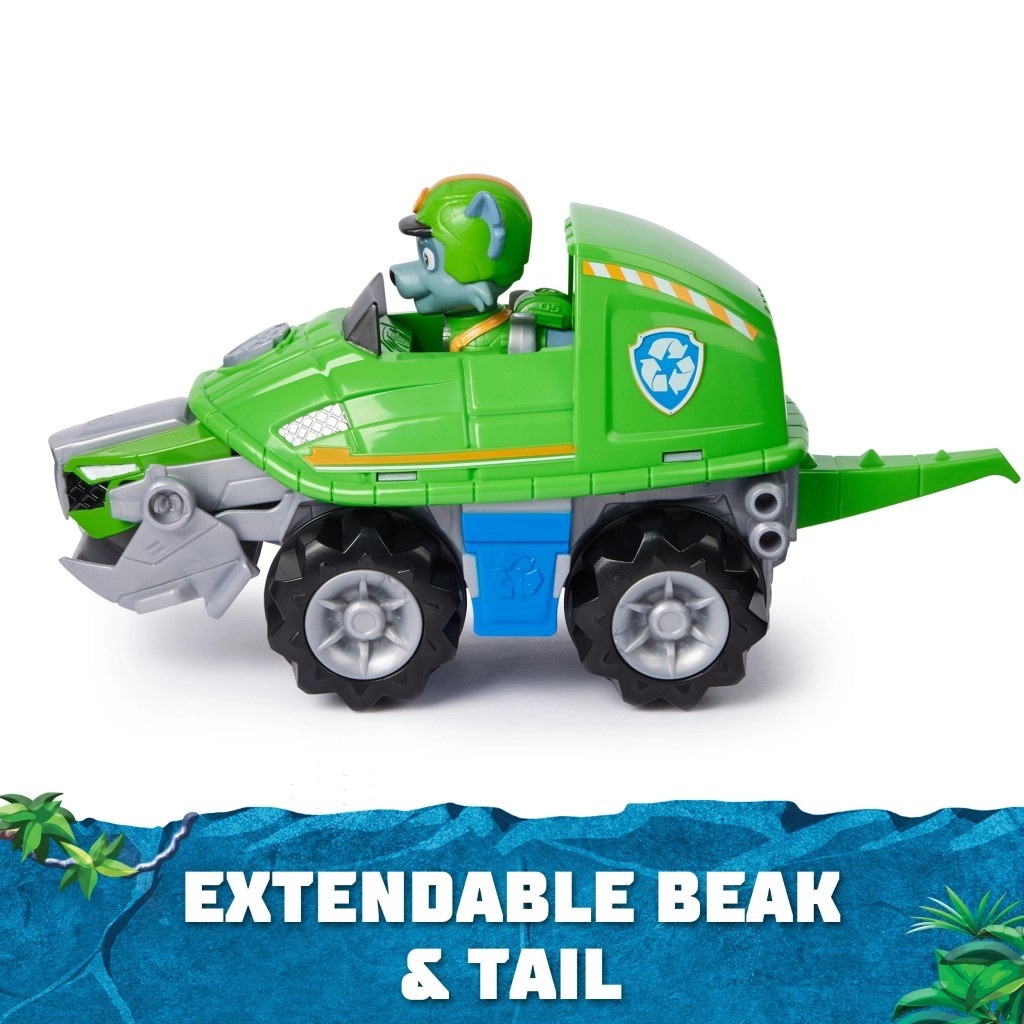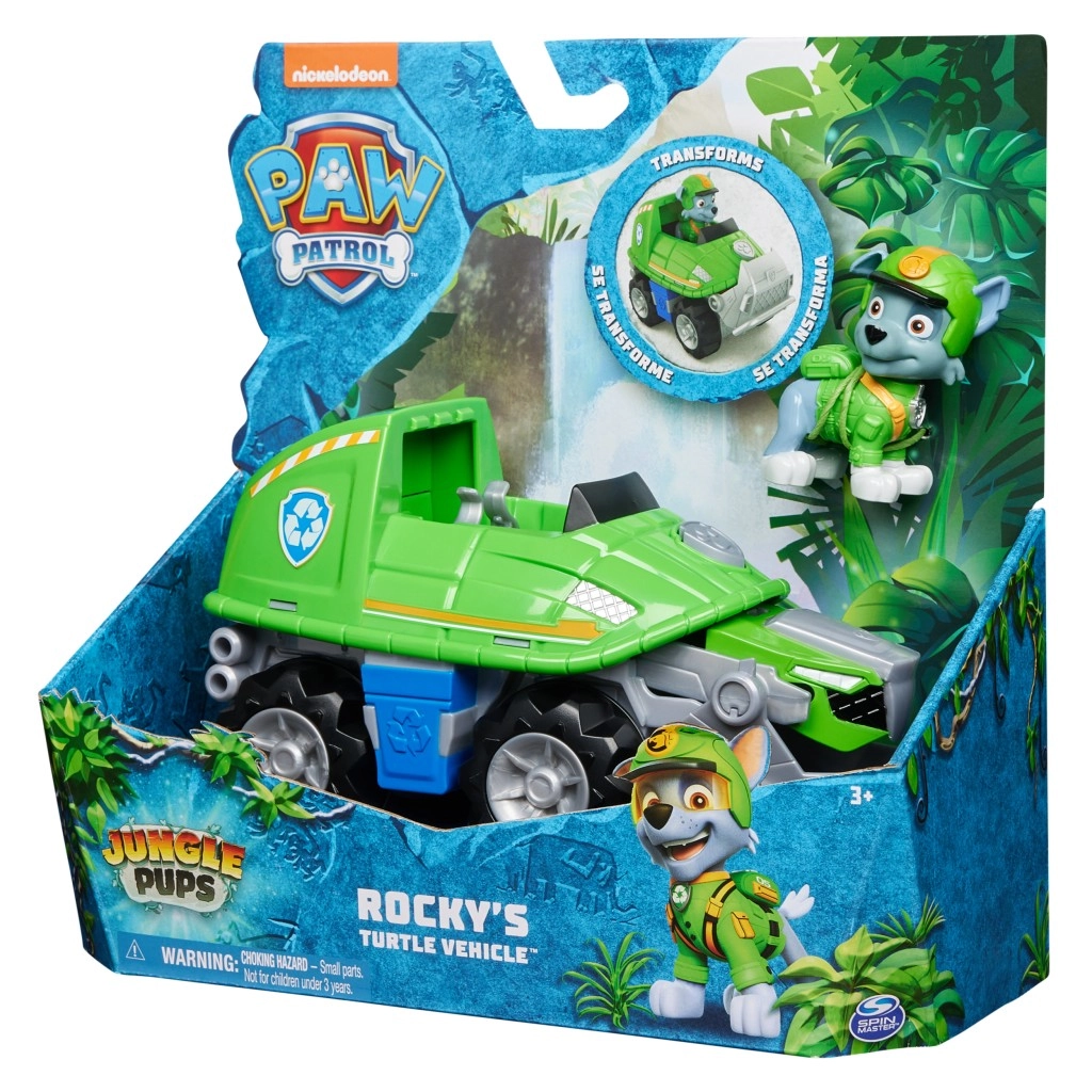 Suundu tegevusmissioonidele Rocki ja tema muundatava sõidukiga kollektsioonist Paw Patrol: Džungel. Ühe nupuvajutusega läheb sõiduk päästerežiimi – avaneb kilpkonna nokk ja saba, mis aitavad takistusi ületada. Suurepärane mänguasi laste fantaasia ja peenmotoorika arendamiseks.