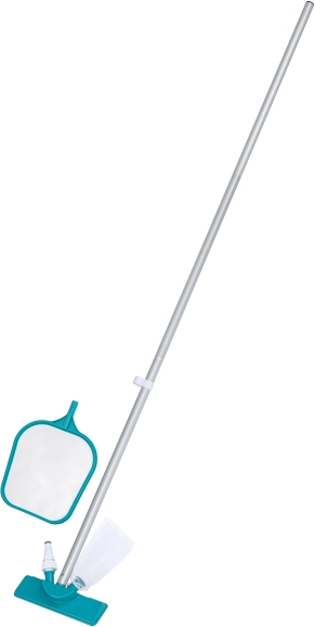 Komplekt sisaldab selliseid komponente nagu tolmuimeja ja võrk, mis eemaldavad basseinist mustuse tõhusalt.