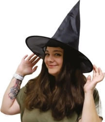 Tõsta oma kostüüm järgmisele tasemele elegantse musta nõiakübaraga. Kerge tekstiilmaterjal ja kokkupandav lahendus tagavad lihtsa kandmise ja hoiustamise, muutes selle perfektselt sobivaks Halloweeniks, karnevaliks ja temaatilisteks õhtuteks.