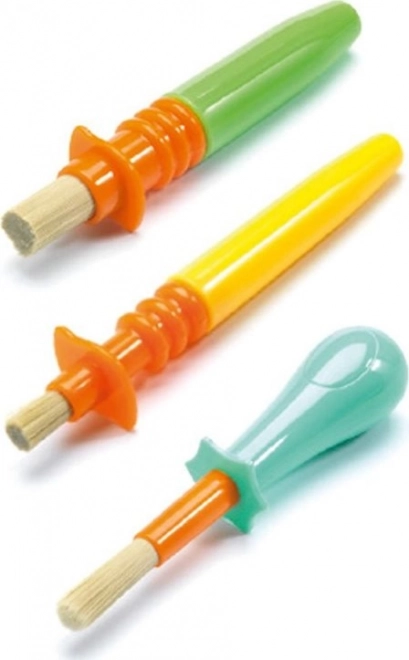 DJECO lastemaalipintslite komplekt kvaliteetsete harjaste ja väikestele kätele sobiva ergonoomilise käepidemega. Ideaalne esimesteks maalikatsetusteks, arendab peenmotoorikat, loovust ja turvalist haaret alates 3. eluaastast.