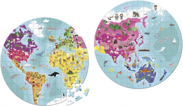 Avastage lastega maailma JANODi ümmarguse maakera-teemalise puslega. See kvaliteetne, 50 cm läbimõõduga pusle sisaldab 208 tükki, mis kujutavad ida- ja läänepoolkera koos loomade illustratsioonidega. Suurepärane mängides õppimiseks, arendab kannatlikkust, peenmotoorikat ja ruumilist kujutlusvõimet, kõik praktilises kohvripakendis.