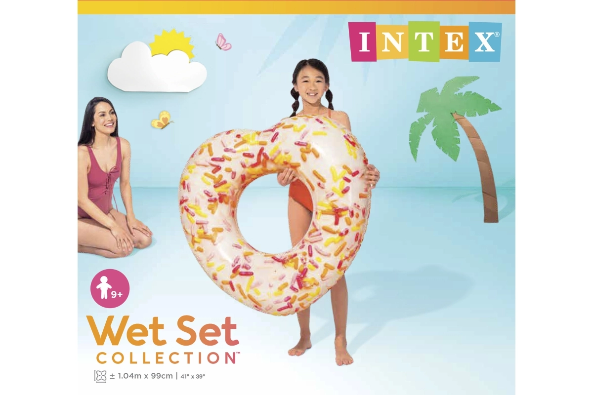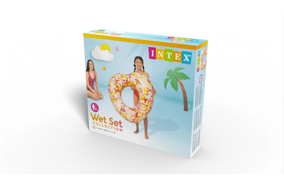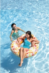 See originaalne südamekujuline täispuhutav rõngas rõõmustab kõiki veelembeseid. Realistlik sõõrikuprint koos puistetega lisab su ujumisele mängulist meeleolu, samas kui tugev ja vastupidav materjal tagab turvalise ja mugava lebamise veepinnal.