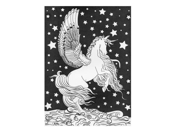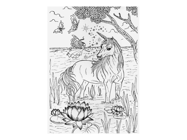 Värviraamat sisaldab ükssarvikute motiive maagilistes keskkondades, mida täiendavad detailid nagu lilled ja liblikad, sütitades sinu kujutlusvõime.