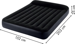 Kahekordse seinaga täispuhutav INTEX madrats mõõtudega 203 × 152 × 25 cm pakub mugavat magamist kahele nii kodus kui ka reisil. Valmistatud vastupidavast PVC-st, pealispind on meeldiv veekindel veluur. Tänu sisseehitatud elektripumbale saab madratsi täis umbes 250 sekundiga. Stabiilne konstruktsioon tehnoloogiaga Dura-Beam Fiber tagab suurepärase seljatoe, samas kui integreeritud padi lisab lisamugavust. Praktiline ventiil võimaldab kiiret tühjendamist ja lihtsat hoiustamist.