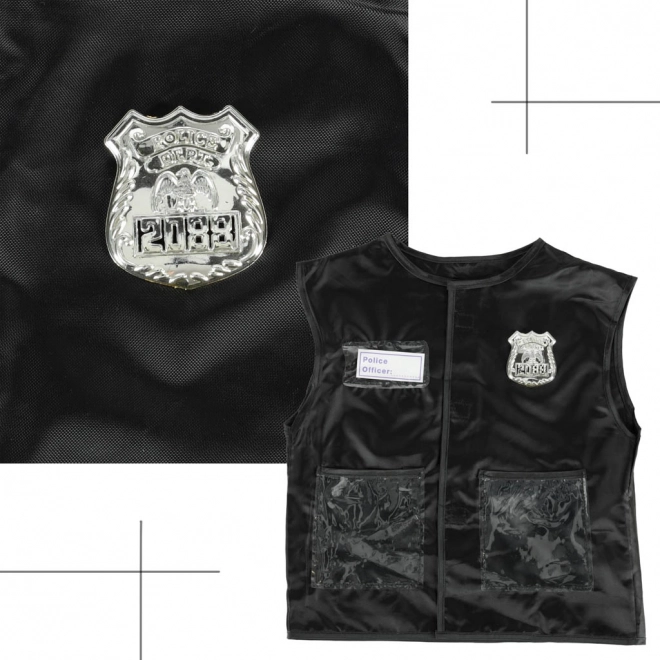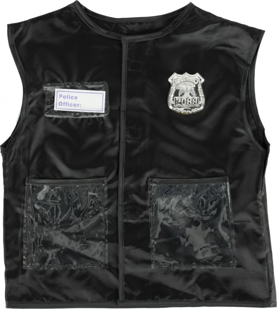 Vestil on läbipaistvad taskud, hõbedane märk ja embleem „Police Officer”, mis laseb lastel end tunda nagu päris politseinik.