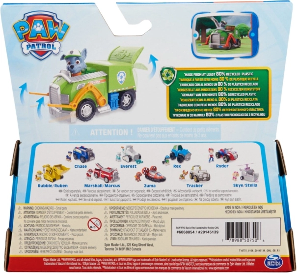 Sukeldu Paw Patroli maailma Rocky taaskasutusautoga, mis toetab loodussõbralikku käitumist. Komplekt sisaldab detailset Rocky figuuri rohelises vormis ja tema rohelist taaskasutusautot realistlike funktsioonidega fantaasiarikkaks mänguks.