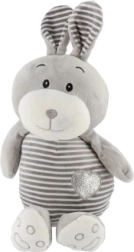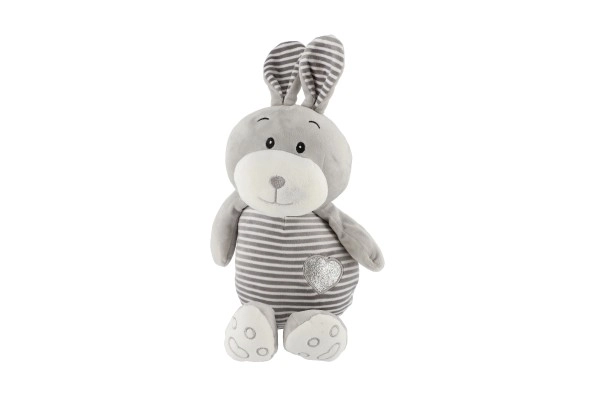 See hall triibuline jänku armsate detailide ja kõhul oleva südamekestega pakub lastele turvatunnet ja mugavust. See on valmistatud meeldivast, pehmest materjalist, mis kutsub kallistama ning on õrn ka kõige pisematele.