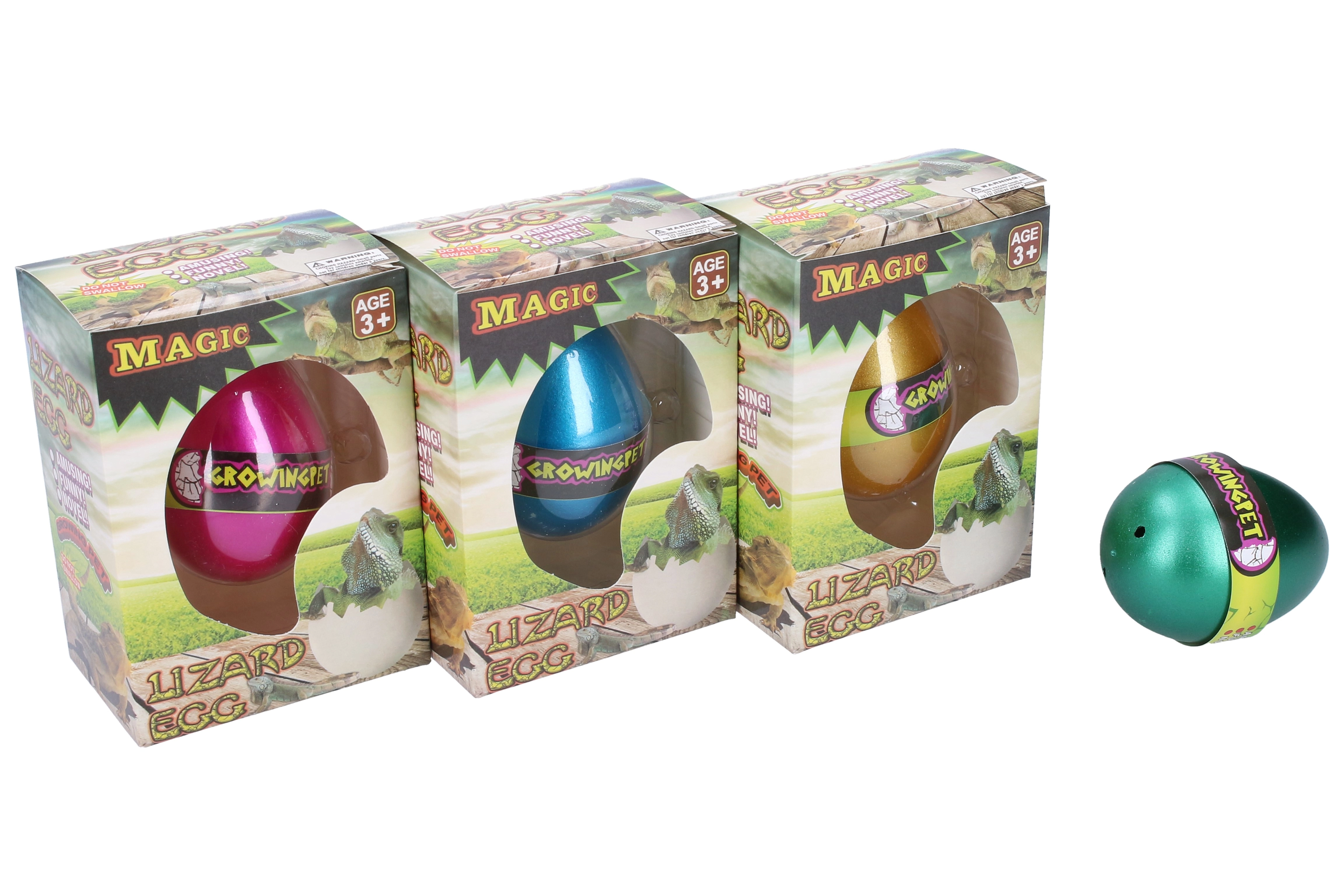Need imelised munad varjavad endas saladust – maagiliselt kasvavat sisalikku! Aseta muna lihtsalt vette ja vaata, kuidas see aegamisi koorub ja suureneb hämmastavate mõõtmeteni. Saadaval on neli värviversiooni: sinine, kuldne, roheline ja lilla, mis pakuvad igal avamisel mitmekesisust ja põnevust.
