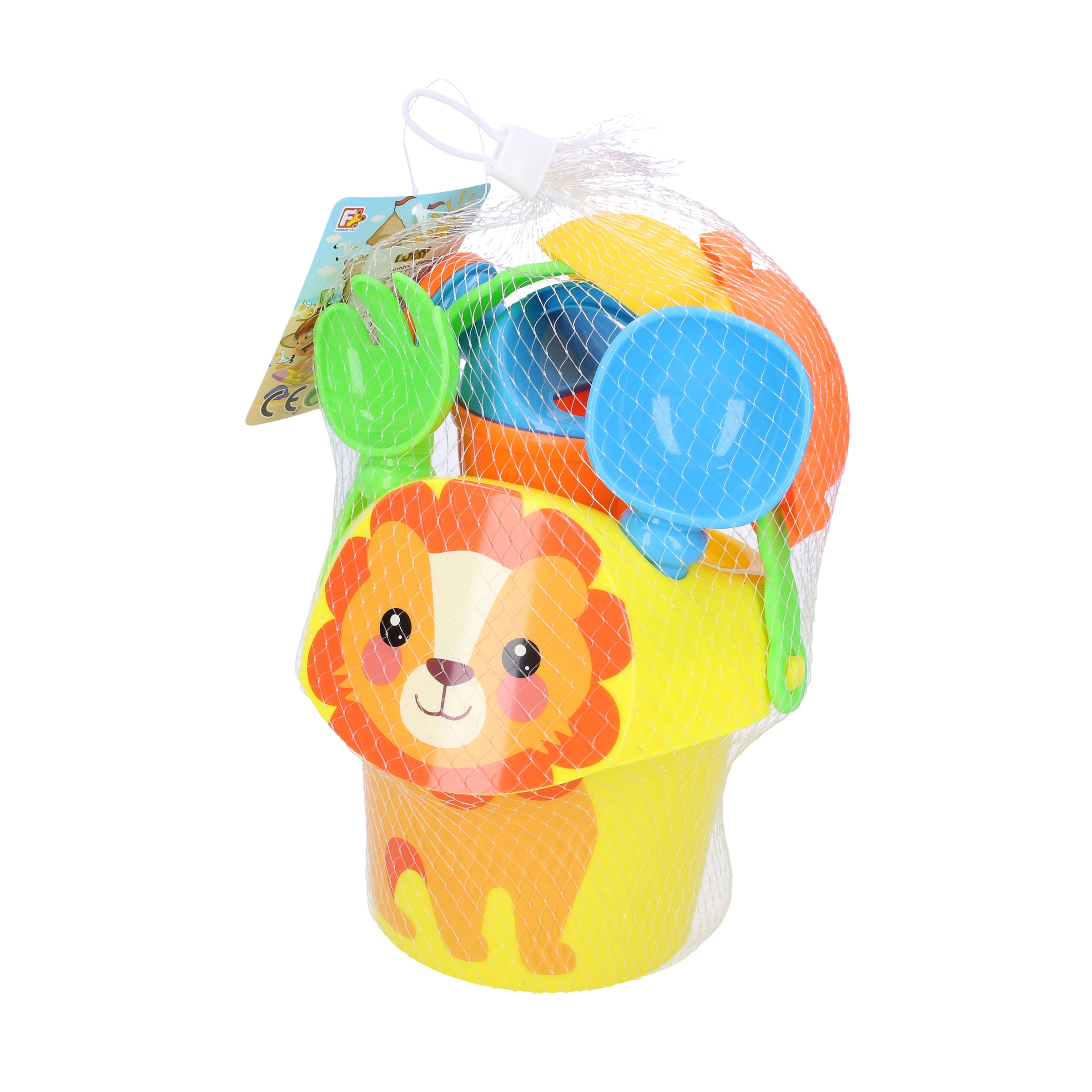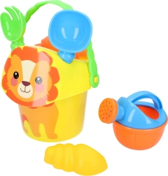 See praktiline liivakomplekt pakub lastele tunde loovat mängurõõmu. Kerged ja vastupidavad plastosad teevad kasutamise lihtsaks ja turvaliseks. Värviline teostus ja loomanäoga ämbri pilt sütitavad kujutlusvõimet ning innustavad õuemängule.
