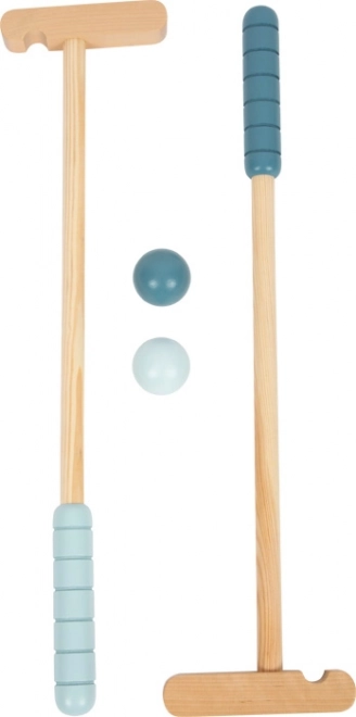 Komplekt sisaldab kõike koheseks mänguks: 2 puidust keppi mugava haaratsiga, 2 värvilist palli ja ühe rambi koos tunneliga. Mäng sobib 2 mängijale ning arendab tervislikku võistlusvaimu, kannatlikkust ja täpsust. Vastupidavad materjalid (puit, metall, vilt) tagavad pika kasutusea ja ohutu kasutamise.