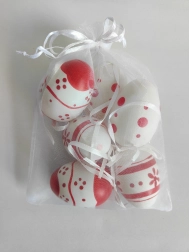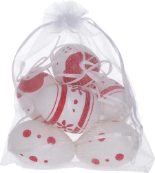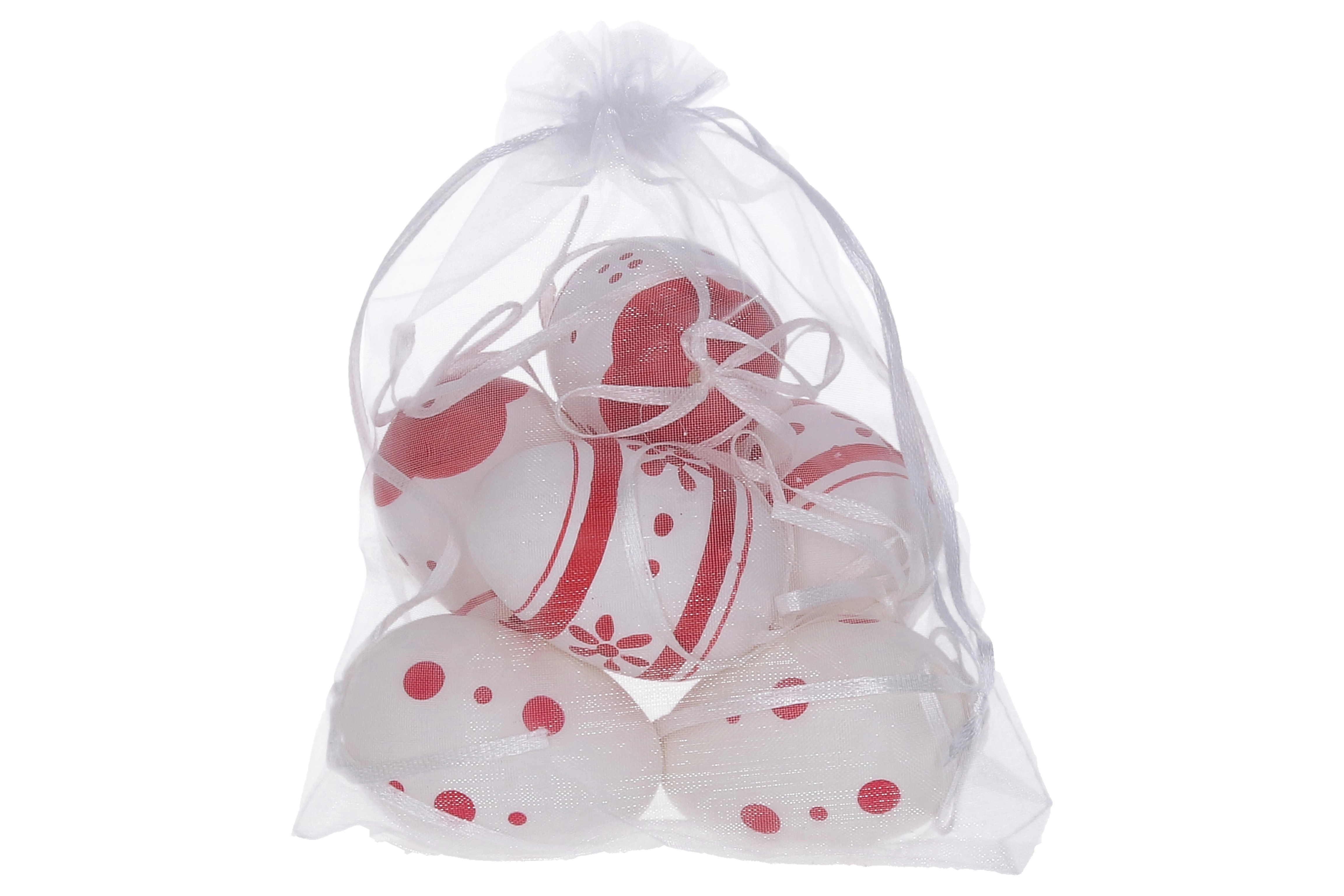 Dekoratiivsed maalitud plastmunad suurusega 6 cm on ideaalsed pühadekaunistusteks. Komplektis on 6 tükki elegantses organzakotis.