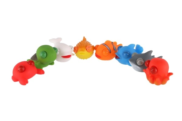 Populaarsete mereloomade segu (kalad, hai, kilpkonn, vaal, kaheksajalg jm) sobib vanni, duši alla ja kuivmänguks. Vastupidav teostus on kergesti pestav ning kompaktse 9–10 cm suuruse tõttu sobivad mänguasjad väikestesse laste kätelabadesse ja ka antistress-abilisteks töölauale.