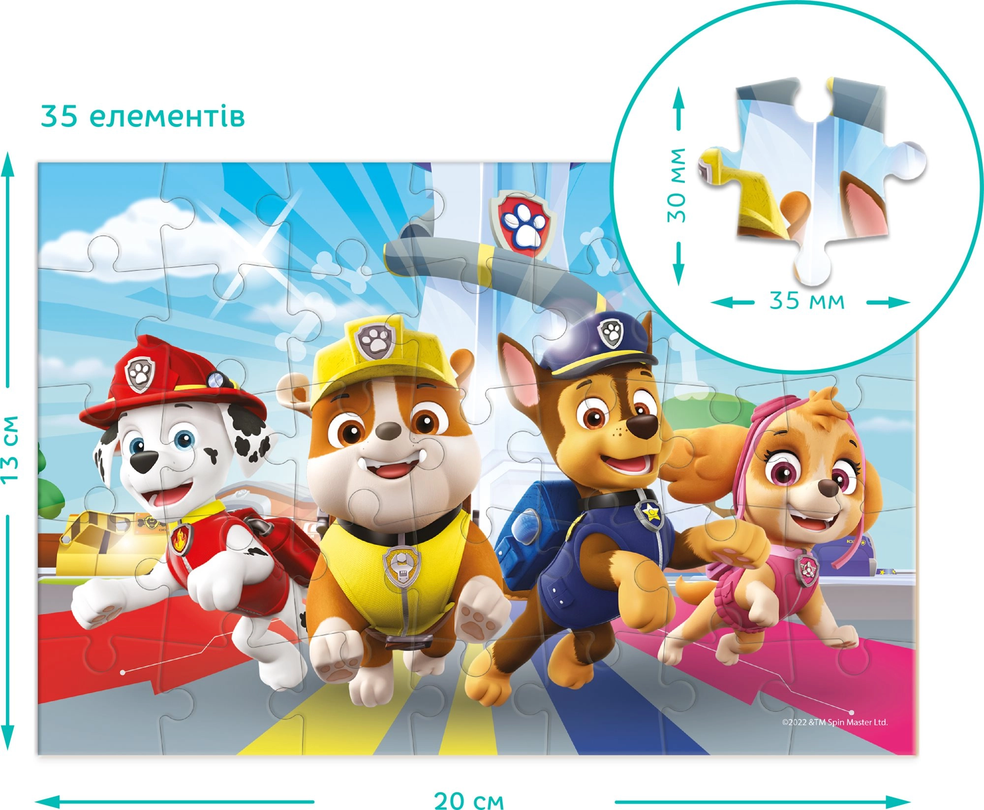 PAW Patroli kangelastega minipusle toob lastele rõõmu kokkupanekust ja edutunnet valmispildi näol. Tänu 35 vastupidavale tükile sobib see hästi esimesteks suuremateks pusledks ning toetab kannatlikkust, keskendumist ja visuaalset taju.