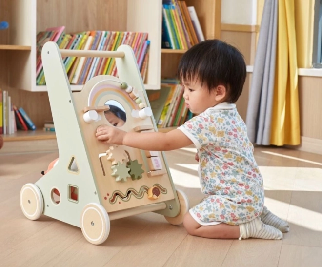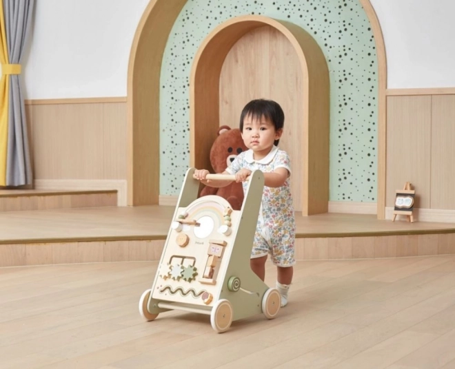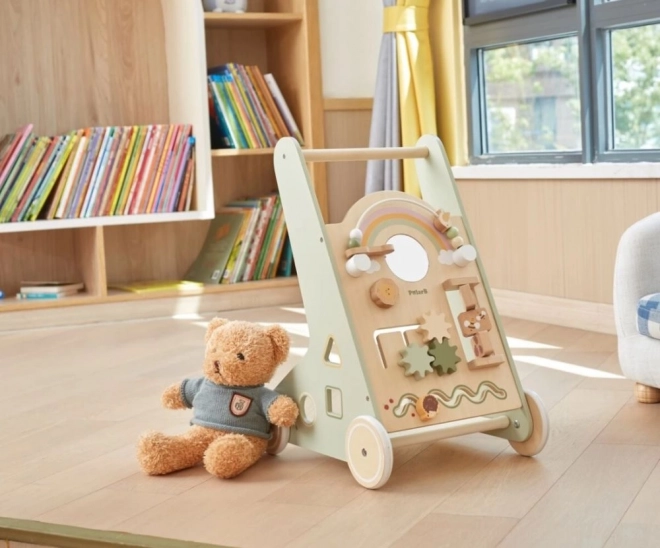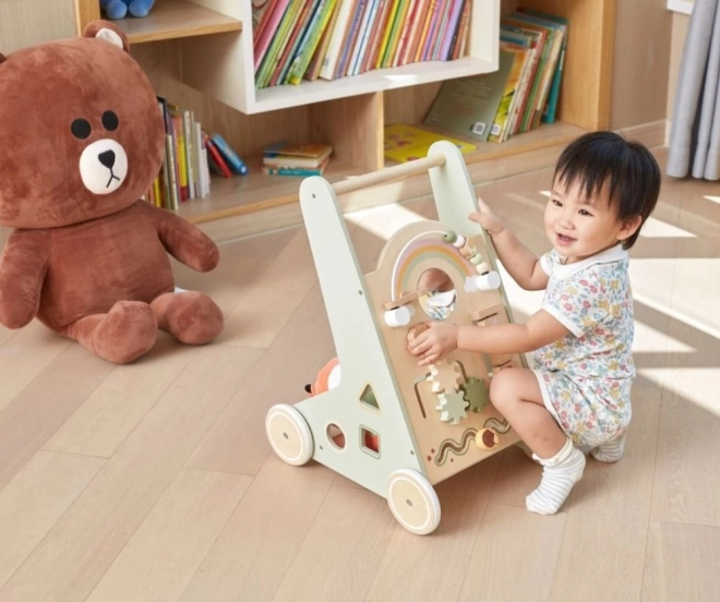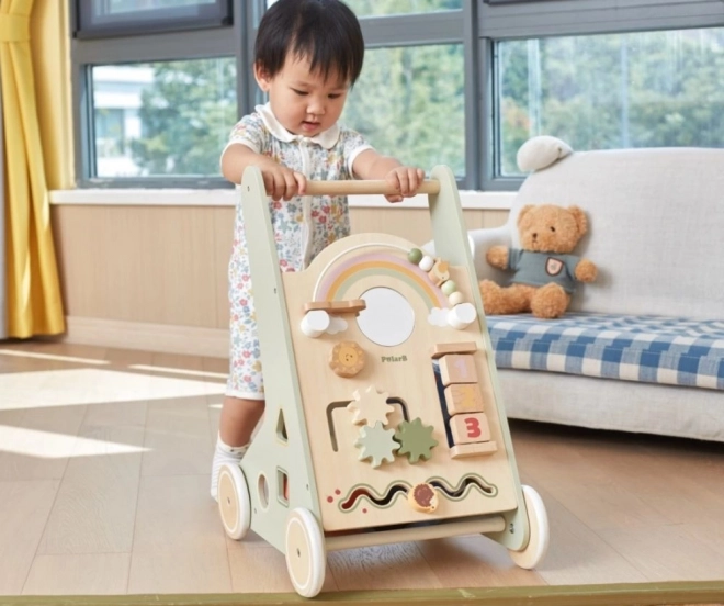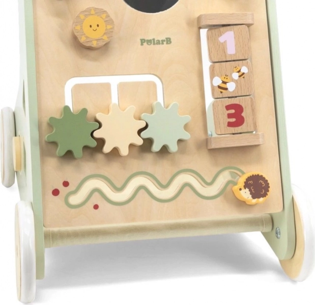 Stiilne PolarB sarja Viga puidust käimistugi väikelastele ühendab esimestel sammudel pakutava toe ja multifunktsionaalse tegevuspaneeli mängimiseks ja õppimiseks. Leiad siit hammasrattad, kujude sorteerimise, peegli, helmeread, liugurid ja mini-tahvli. Toetab peen- ja üldmotoorikat, koordinatsiooni ning enesekindlust kõndimisel.