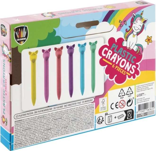 Unikaalsed vahakriidid lõbusate ükssarvikute motiiviga toovad laste joonistamisse rõõmu ja värvi. Komplektis on 6 pastelltooni, mis panevad iga pildi särama.