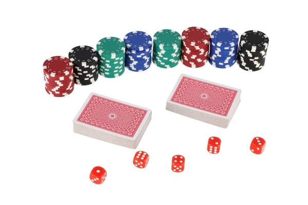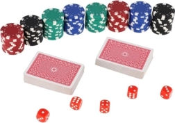 Komplektist leiate kõik, mida on vaja koheseks mänguks: 100 tk žetoone põhirevääridega, 2 kaardipakki sujuvaks mänguks ja 5 klassikalist täringut teiste populaarsete lauamängude jaoks. Kompaktsed mõõtmed teevad komplekti hõlpsasti kaasaskantavaks ja sobivaks ka reisidele.