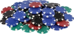 Komplekt sisaldab 100 žetooni, 2 kaardipakki ja 5 täringut – ideaalne baas koduseks pokkeriturniiriks ilma lisahankedeta.