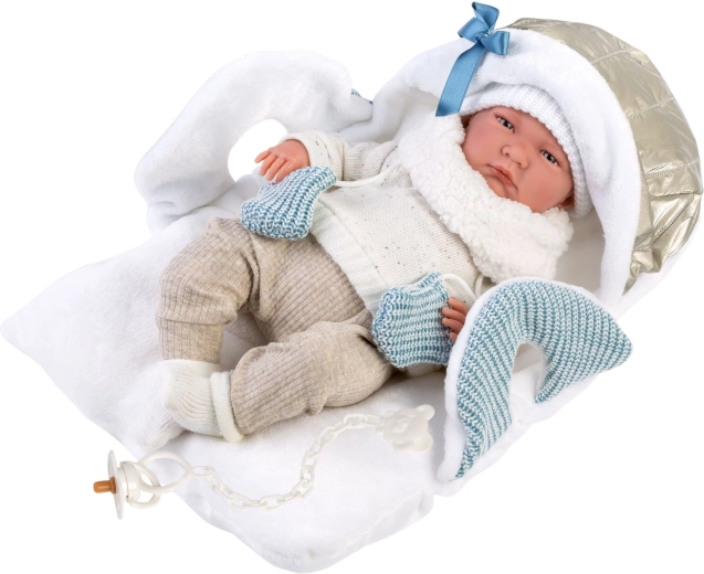 Paku nukule täiuslikku mugavust ja stiili. See hoolikalt kokku sobitatud komplekt sisaldab kõike, mida väikesed hoolitsejad vajavad: kvaliteetset riietuskomplekti ning ülipehmet kapuutsi ja rihmadega kandematti lihtsaks kaasaskandmiseks. Tänu käsitööle Hispaanias paistab komplekt silma täpse viimistluse, pehmete materjalide ja suurepärase lõikega NEW BORN nukkudele suuruses 40–42 cm.