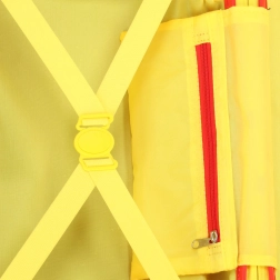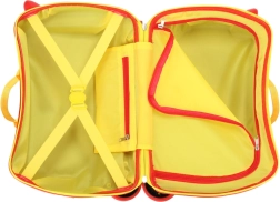Vastupidav plastikust korpus, kandevõime kuni 20 kg ja integreeritud jalatoed võimaldavad lapsel mugavalt istuda ja sõita – ideaalne lennujaamadesse ja jaamadesse. Eredalt kollane sisemus lisab mängulisust ja parandab ülevaadet paigutatud asjadest.