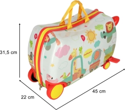 Lõbusad loomamotiivid ja erksad värvid innustavad lapsi iseseisvalt pakkima ning reisist rõõmu tundma.