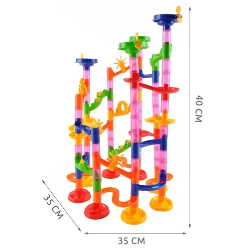 Jälgige, kuidas kuulid panevad pöörlema tuulerattad, läbivad aasad ja ületavad takistusi. Lapsed omandavad loomulikul viisil gravitatsiooni, kiiruse ja põhjus-tagajärje põhimõtteid.