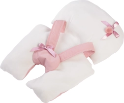 Pehme alus dekoratiivse paela ja turvaliste rihmadega toimib praktilise toolikesena nukule, tagades stabiilse istumise.