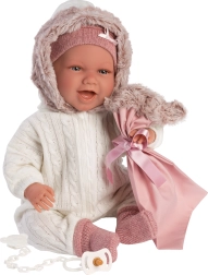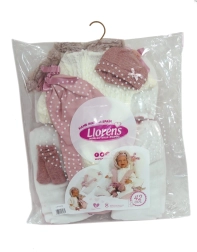 Stiilne komplekt NEW BORN nukkudele suuruses 40–42 cm sisaldab 3-osalist riietust dekoratiivse taskuräti detailiga ning pehmet paelaga ja rihmadega alust, mida saab kasutada kui praktilist toolikest nukule. Hispaanias käsitsi valmistatud toode tagab kvaliteedi ja detailse viimistluse – ideaalne lisa väikestele hoidjatele alates 3. eluaastast.