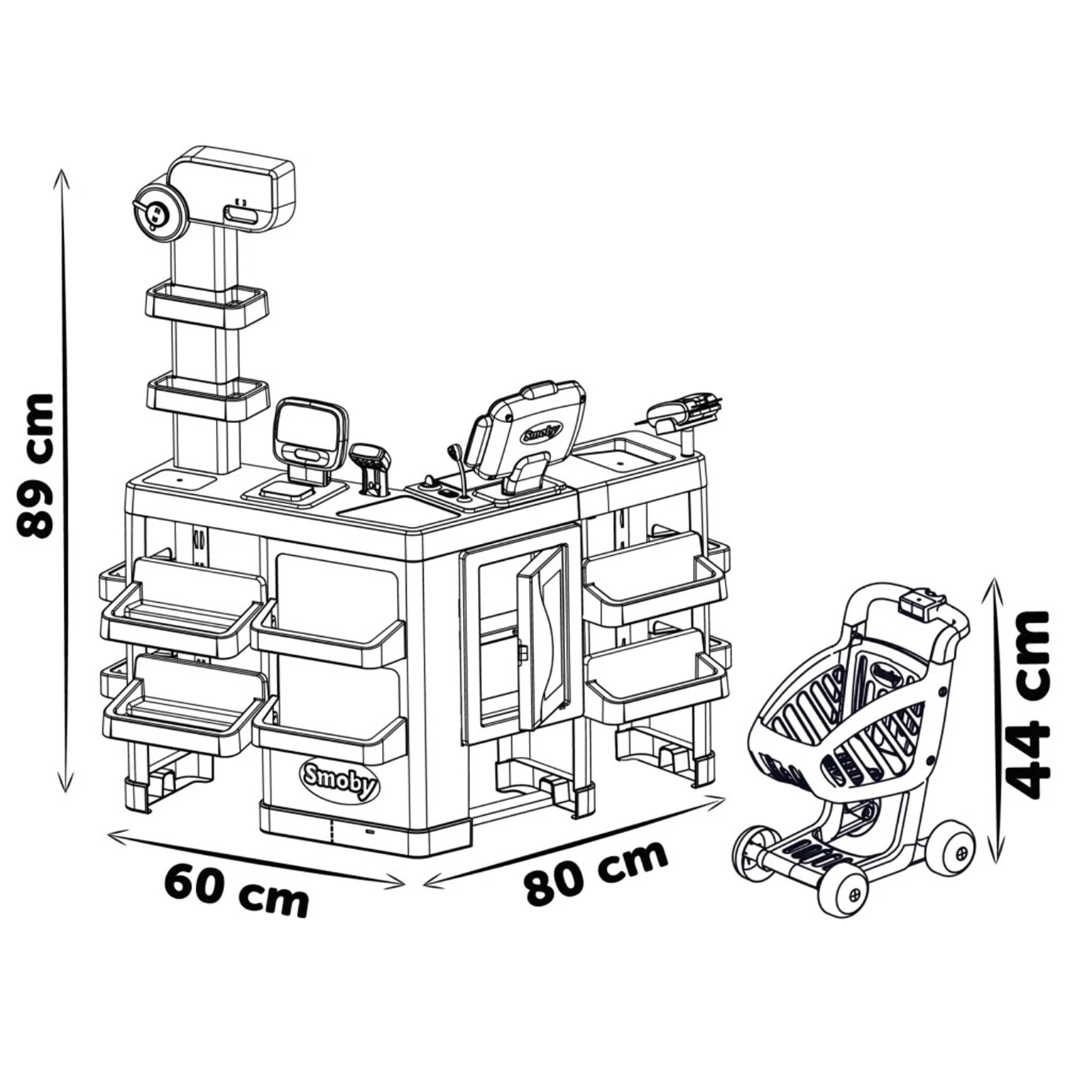 Lõbus ja interaktiivne SMOBY supermarket sobib suurepäraselt lastele, kes soovivad sukelduda ostude ja müügi maailma. Mängukomplekt sisaldab kõike, mida leidub päris poes: kassalett valgus- ja heliefektidega skanneriga, mehaaniline kaal ning krediitkaardilugeja. Suurepärane lisandus on ostukorv, mis teeb poe-mängud veelgi toredamaks.