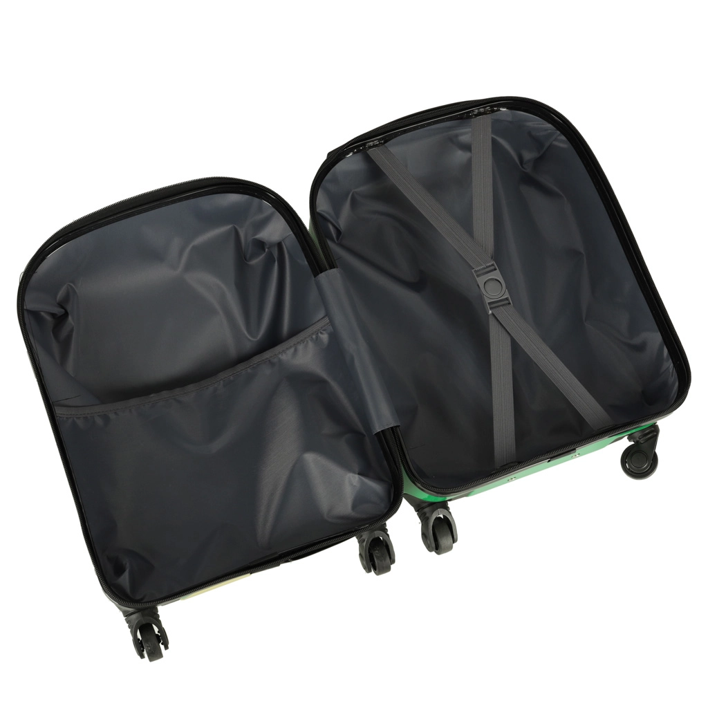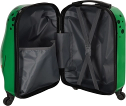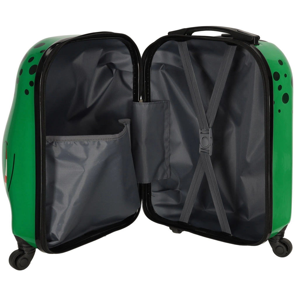 Sisemus on jaotatud kaheks: üks võrktaskuga ja teine ristkummidega sisu kindlaks kinnitamiseks. Neli pöörlevat ratast ja väljatõmmatav käepide võimaldavad lastel kohvrit hõlpsalt juhtida.