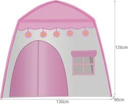 Stiilne laste telk roosa-valges kombinatsioonis pakub kolme võrkkangast akent ja mugavat sissepääsu, sobides suurepäraselt lugemiseks, mängimiseks ja lemmikmänguasjade hoidmiseks. Tänu kompaktsetele mõõtudele 126 × 130 × 90 cm sobib lastetuppa ning seda saab kaasa võtta ka maakoju või terrassile.